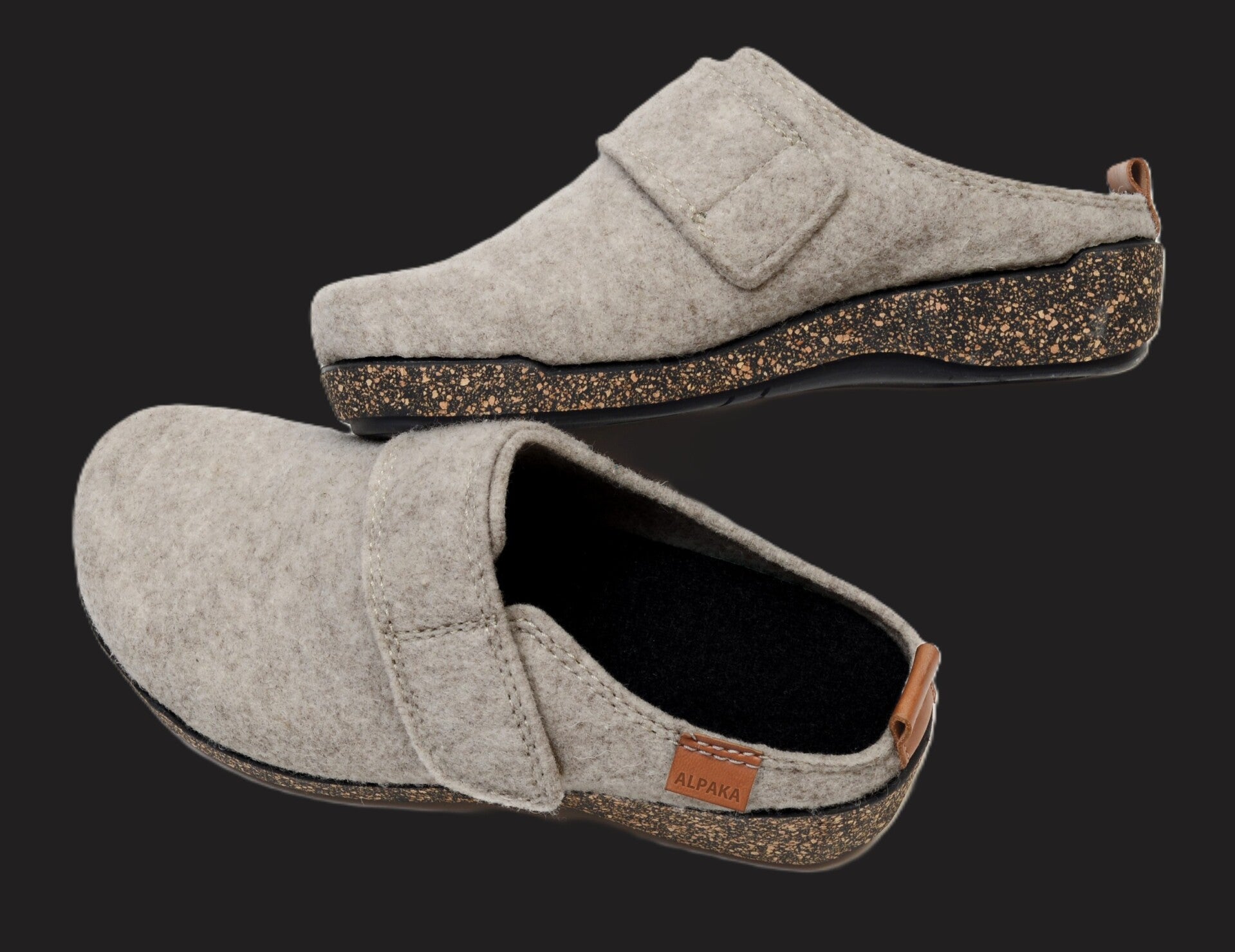 Der erste Alpaka-Pantoffel mit dem man auch hinaus gehen kann! Sehr bequeme Kunststoff-Korksohle. Oberteil aus 50 % Alpaka / 50 % Merino, herausnehmbares Fussbett aus 50 % Alpaka / 50 % Wolle.